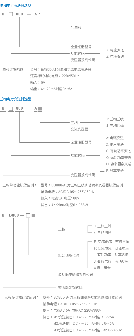 800系列电力变送器是一种将电网中的电流、电压、频率、功率、功率因数等电参量,经隔离变送成线性直流模拟信号的装置。